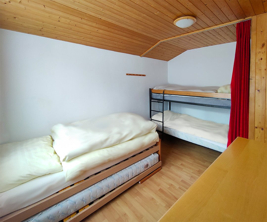 Bed linen (20.-CHF/ bed) and final cleaning ( 120.- CHF ) are charged separately.