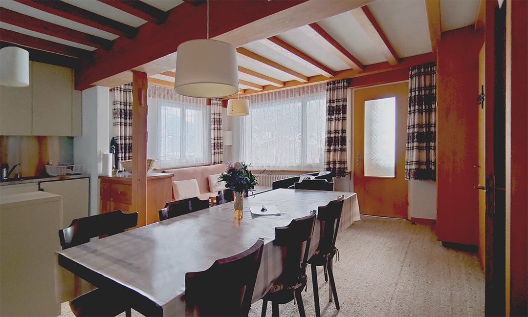 House Eva is a house with two apartments, a large parking lot and a large play lawn, in Savognin, Grisons.